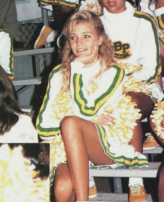 En los recuerdos granulados de 1989, Cameron Diaz es un destello imposible de contener. Cumple la coreografía, sí —marca los pasos, sostiene la sonrisa—, pero en esos ojos azules hay una mirada concreta, cómplice, como si guardara un secreto. Es el zumbido de lo que está a punto de ser grande. Mientras la multitud sigue el balón, ella busca las salidas. No es solo una animadora: es alguien esperando a que el mundo sintonice su frecuencia.
